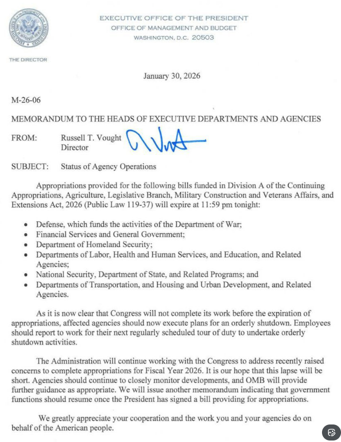 🛑BREAKING: The US OMB confirms a government shutdown will begin at midnight.🛑