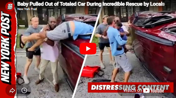 A group of Good Samaritans in South Florida sprang into action after a small car ran a red light and smashed into a red SUV, flipping it over. Witnesses rushed to help the family escape the crushed vehicle, pulling out the baby, grandmother and father from the wreckage.