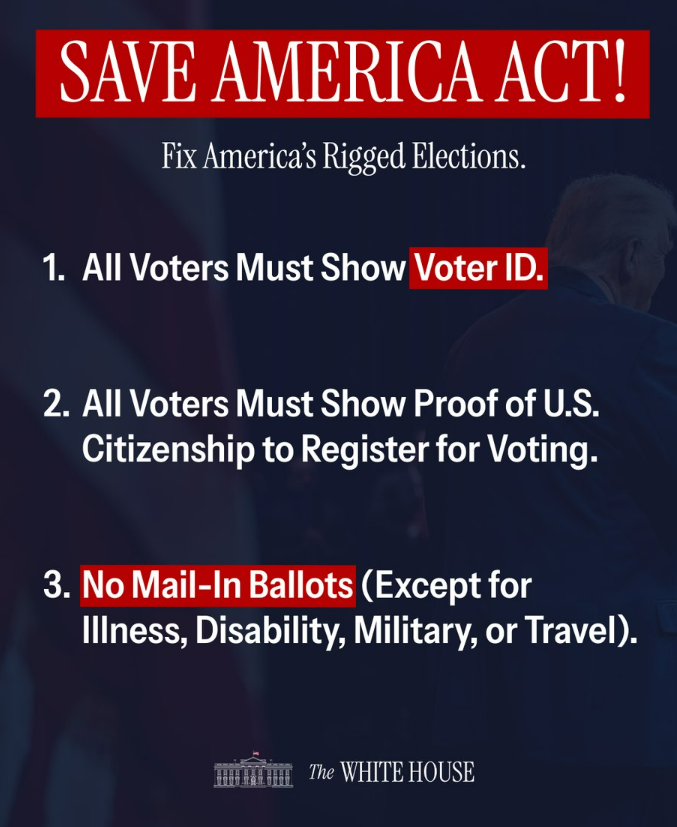 “You need an ID to attend events of most Democrat politicians, and even the Democrat National Convention! Why would VOTING be any different?!” “They CAN’T answer that question. So, they come up with all these crazy excuses!” TIME TO PASS IT. Send it to Trump!