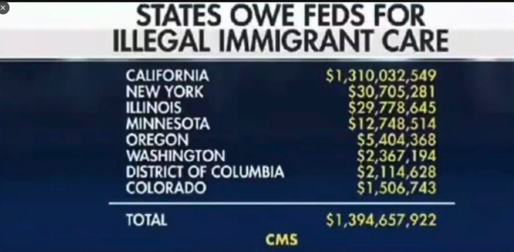 Illegal aliens don’t need Social Security numbers to get healthcare. This is the amount of money that various states owe the taxpayers for illegal aliens’ healthcare.