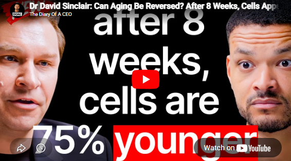 Folks – stay healthy – in just a few years resets will be here – we are talking being 25 again no matter what your age. Couple Sinclair’s tech with AI and the singularity which even Elon Musk says might by within a year or two, well what do you think happens when we 1000x our technology overnight? We are doing it now by the way and folks on Moonshots like AWG says we are in the singularity right now. No matter what – STAY ALIVE. Do not fall for Big Pharma and their scams. STAY ALIVE.
