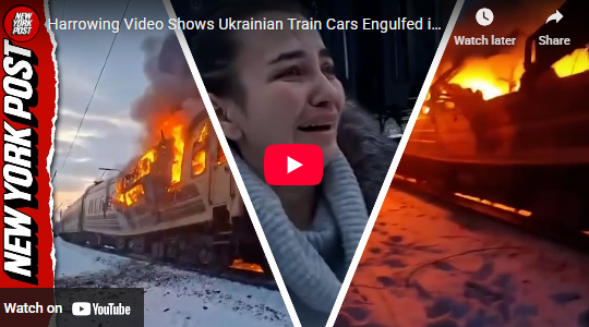 HomeWhatfinger NewsHarrowing Video Shows Ukrainian Train Cars Engulfed in Flames After Russian Drone Attack