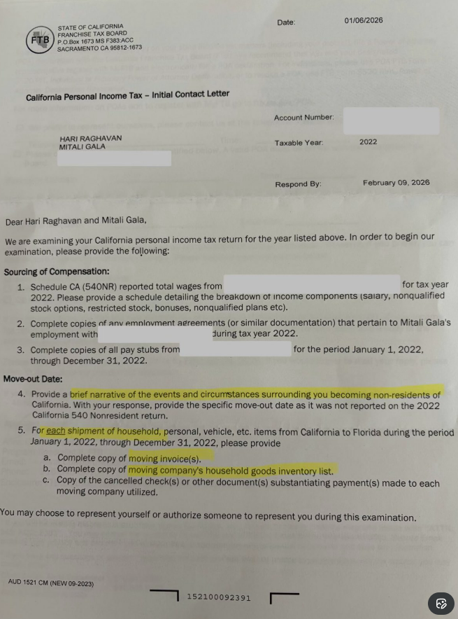 - They tried that with me. I sent back a 15 slide PowerPoint deck. I figured I’d better gather what I have in case we end up in court. It had pay receipts, car registration info, pictures of the moving truck in front of my California house and payments to the movers. I slammed them with so much info they backed off. If you are moving out of California I strongly suggest you document absolutely everything. – The Culture Wag
