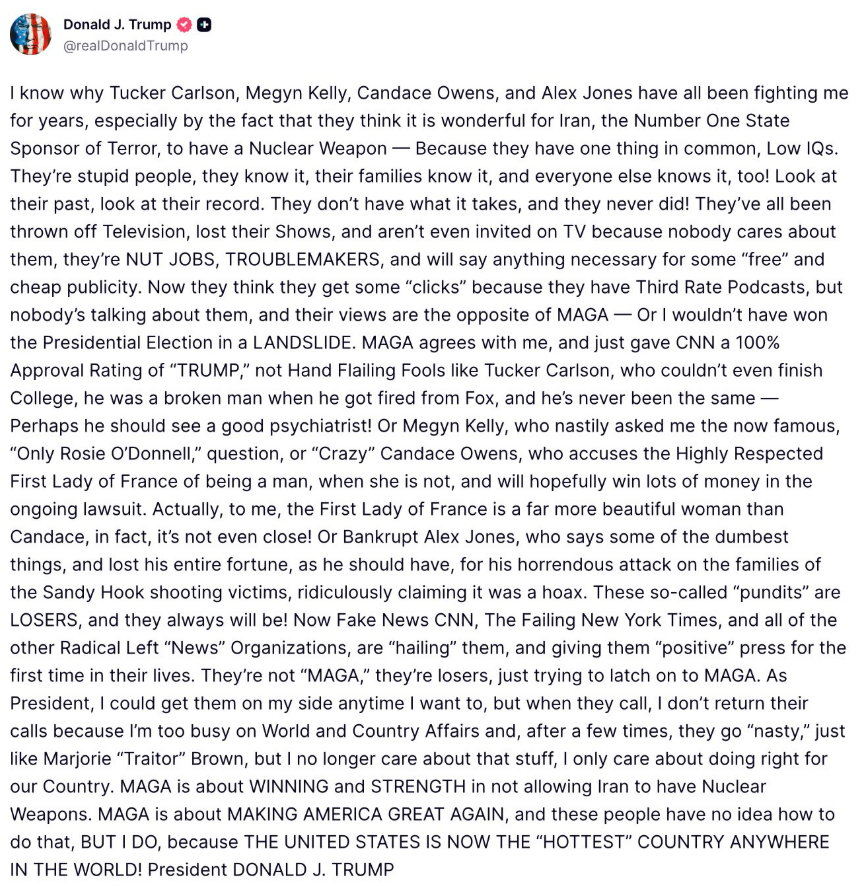 We all feel, or most of us do that some personalities have gone off the rails on some issues. But Trump just swatted them all down. Not sure how to think on it yet, as I do not agree with much of this.
