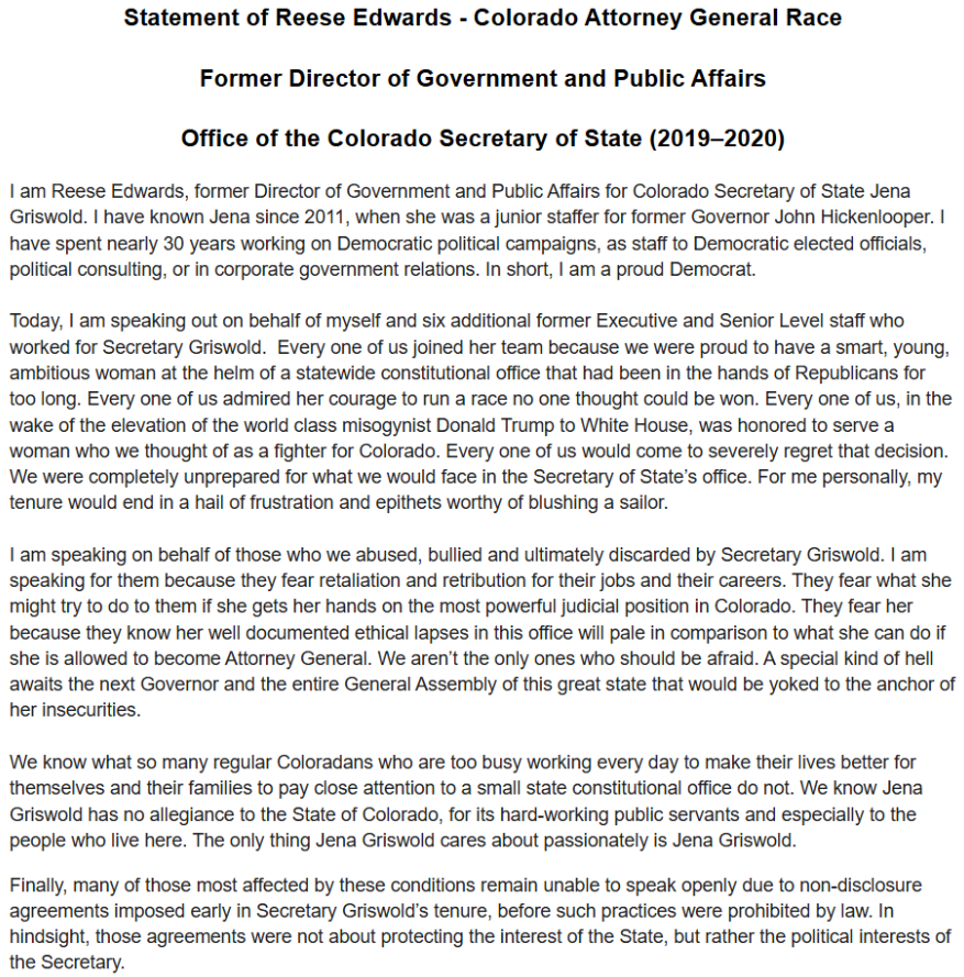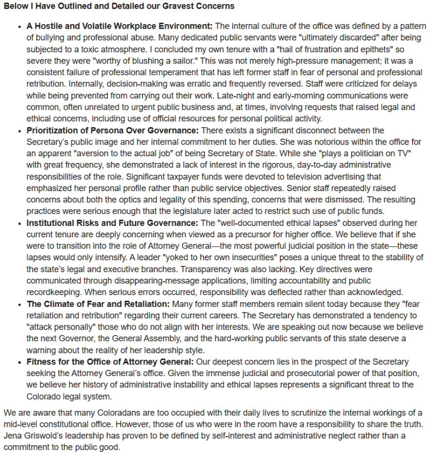 - Attorney General Paul Weiser, get right on that harassment and intimidation from the Secretary of State. Do something and take the whistleblower’s testimony. Griswold is a monster and in charge of the Dominion voting machine scandal in CO and she treats her employees like dirt! LF