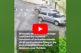 Dramatic surveillance footage captured the moment remnants of an Iranian missile strike sent vehicles flying in the air in a neighborhood in Kafr Qassem, near Tel Aviv. Just 30 seconds earlier, two people who are lucky to be alive could be seen walking right next the car before the moment of impact. Following continuous strikes from Iran on on March 26th, various sites were hit in central Israel by either cluster munition or fragments.