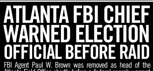 CORRUPTION: FBI Atlanta Chief Paul Brown warned Fulton County elections officials about a coming raid & even shared a list of items agents planned to seize. He was removed just before the warrant was executed. This is a compromised bureau.