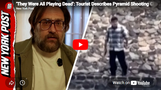 A tourist described scenes of panic at Mexico’s Teotihuacan site after a gunman climbed the Pyramid of the Moon and opened fire, leaving people “playing dead” as others feared mass casualties. Eyewitness Barak Hardley said the shooting lasted up to 20 minutes as confusion spread across the historic landmark. Authorities identified the suspected shooter as 27-year-old Julio Cesar Jasso Ramirez, who died at the scene; one person was killed and at least 13 others were injured.