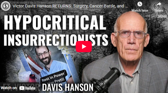 There is “no coherent principle” to the left’s ongoing “utterly hypocritical” “insurrectionary movement” in Minnesota, argues Daily Signal senior contributor Victor Davis Hanson in his first post-surgery video appearance. Nearly five years ago, these same people lambasted Ashli Babbitt, an unarmed 14-year Air Force veteran who was shot and killed by the U.S. Capitol Police on Jan. 6, 2021. The left cheered as hundreds of demonstrators were arrested for allegedly assaulting officers and carrying firearms. Meanwhile, they said it was perfectly OK for somebody like Alex Pretti “to go to a demonstration with a military-grade semiautomatic weapon, with extra clips, and just stick it in his waistband, visible sight of anybody, and then get into a brawl with law enforcement officers,” Hanson continues. “All of our most prominent liberals are saying the state of Minnesota has a right to do what? Occupy federal property? Attack federal officers? Prevent the enforcement of federal law? I thought the left didn’t like states’ rights. I thought they said that this was ‘insurrectionary.’”